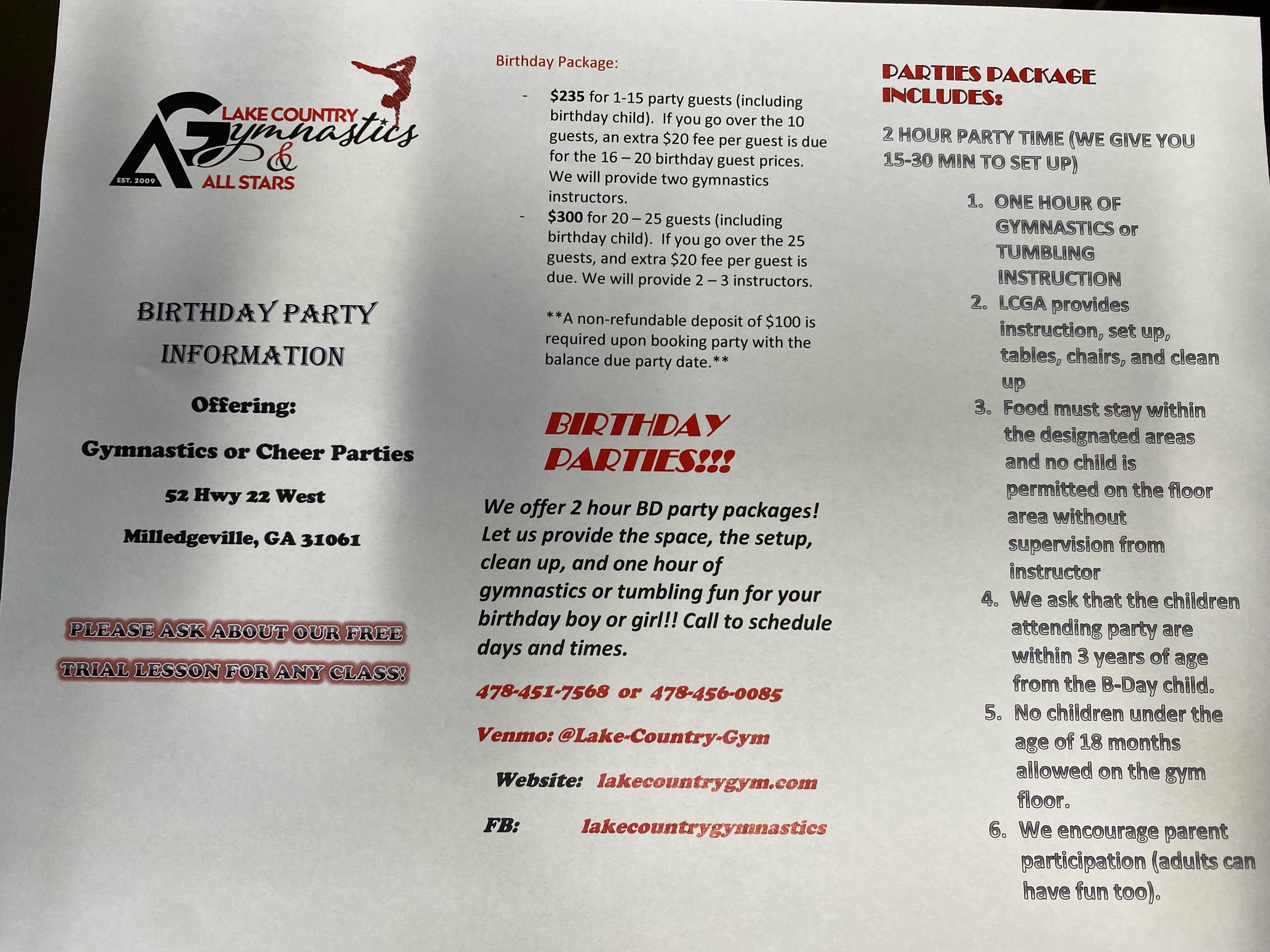 Birthday Parties are great here at Lake Country!!!